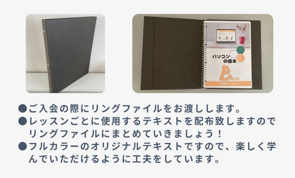 タッチタイピングは「ネコ」の手の形で行います。効率の良いタイピングを覚えると楽しくなりますよ。またWord、Excel、PowerPoint等をオリジナルテキストを用いて楽しく学んでいただけるように工夫をしています。